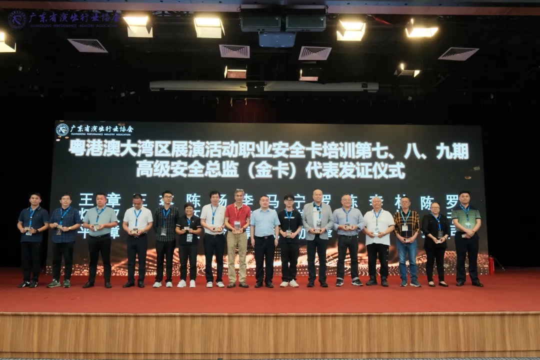 會上頒發了粵港澳大灣區展演活動職業安全卡,恒隆娛樂董事長李鏡淳、高輝演出項目總監馮建情分別取得“高級安全總監(金卡)”。